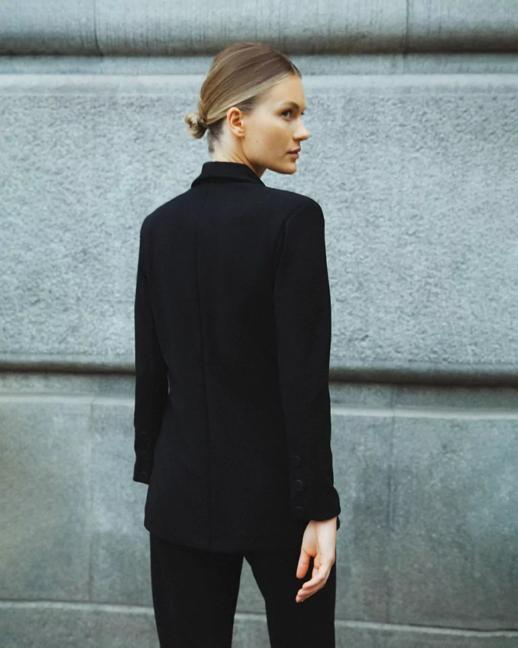 O blazer black é confeccionado com materiais de alta qualidade e acabamentos refinados, o que garante não apenas a beleza, mas também o conforto e a durabilidade da peça.