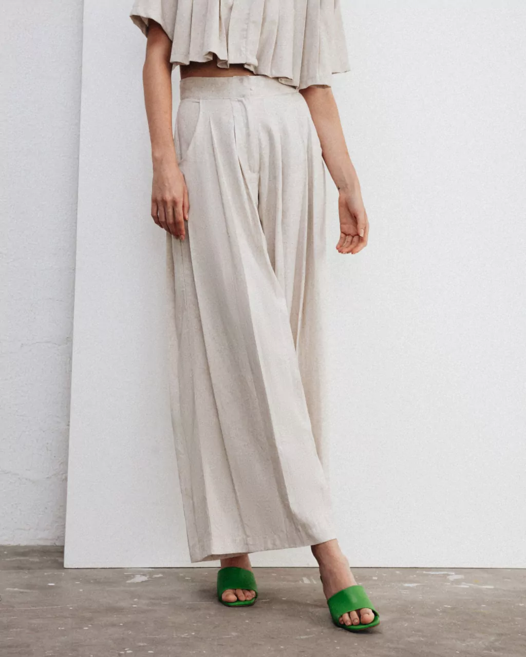 A calça pantalona Daylight é uma peça de destaque em nossa coleção, projetada para proporcionar conforto e estilo em uma única peça. Feita com linho de alta qualidade, ela possui uma coloração natural que combina elegância e simplicidade, tornando-a versátil para diversas ocasiões.