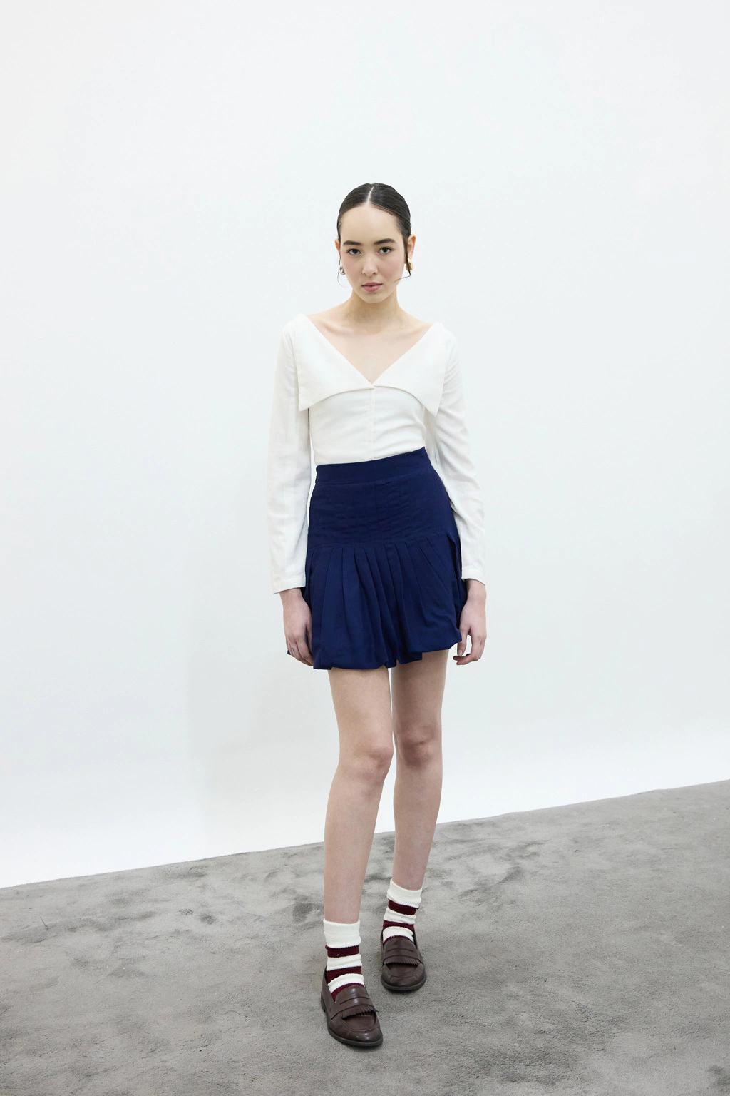A saia Sailor Moon é uma homenagem lúdica e divertida ao famoso desenho animado. Ela apresenta pregas na região do quadril para um ajuste perfeito ao corpo, um corte balonê duplo que proporciona volume, zíper invisível na lateral e comprimento curto. Disponível na elegante cor azul marinho.
